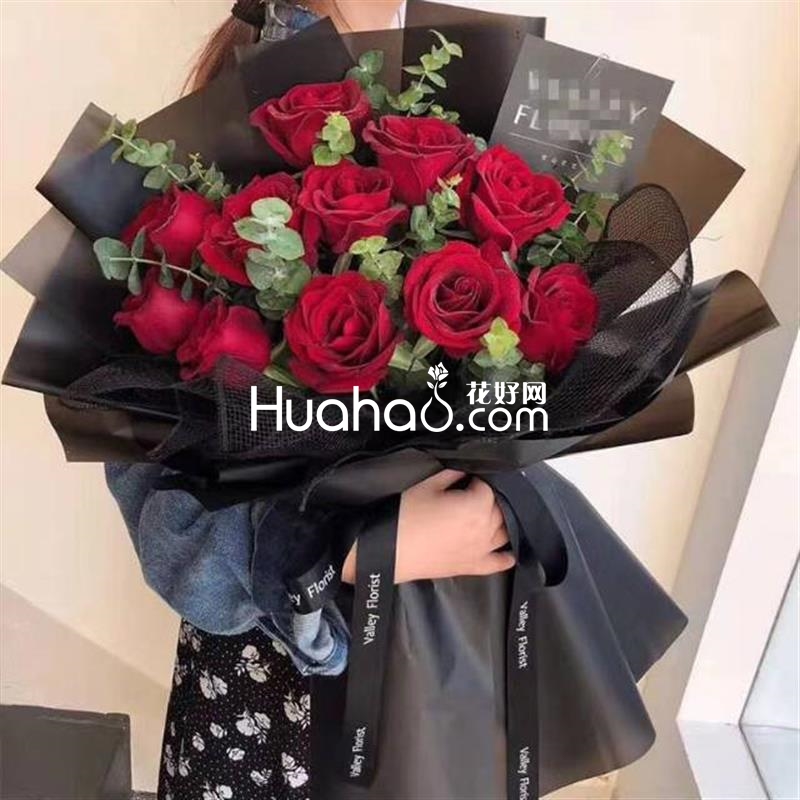Material: 红玫瑰+尤加利叶,韩版黑色包装.