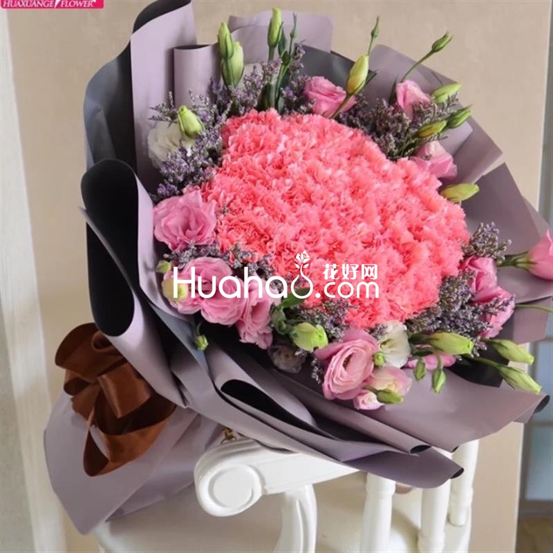 33支粉色康乃馨,搭配情人草桔梗花束.